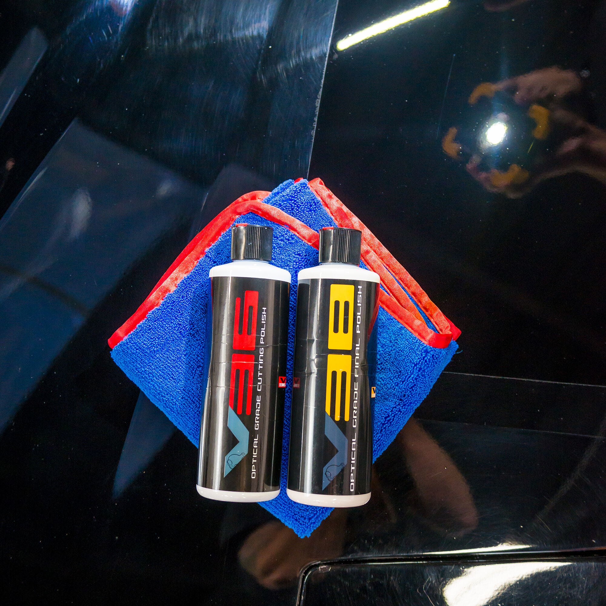 Old school rubbing compounds. rotary polishers. and wool pads just don’t work for modern paint finishes. so Chemical Guys came up with V36 and V38 polishes. These new water-based paints with clear coats are friendly to the atmosphere. but show every swirl and scratch. Get back to a mirror-like finish with the Blemish Removal 2 Step Car Polish Bundle!