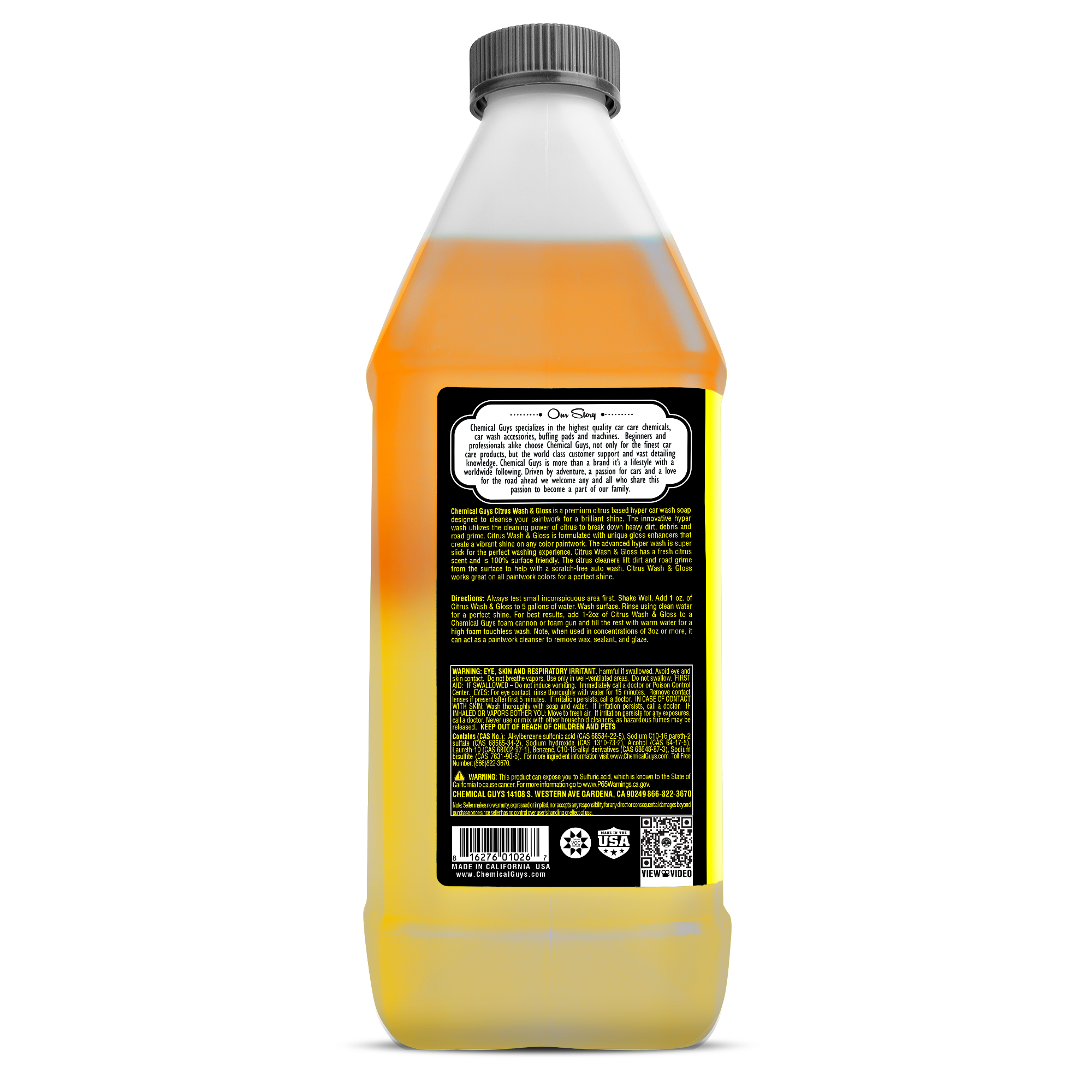 Citrus Wash & Gloss is a powerful hyper-concentrated car shampoo and gloss enhancer formulated to bring out a vibrant shine on all paint colors. Make any vehicle look just waxed and detailed!