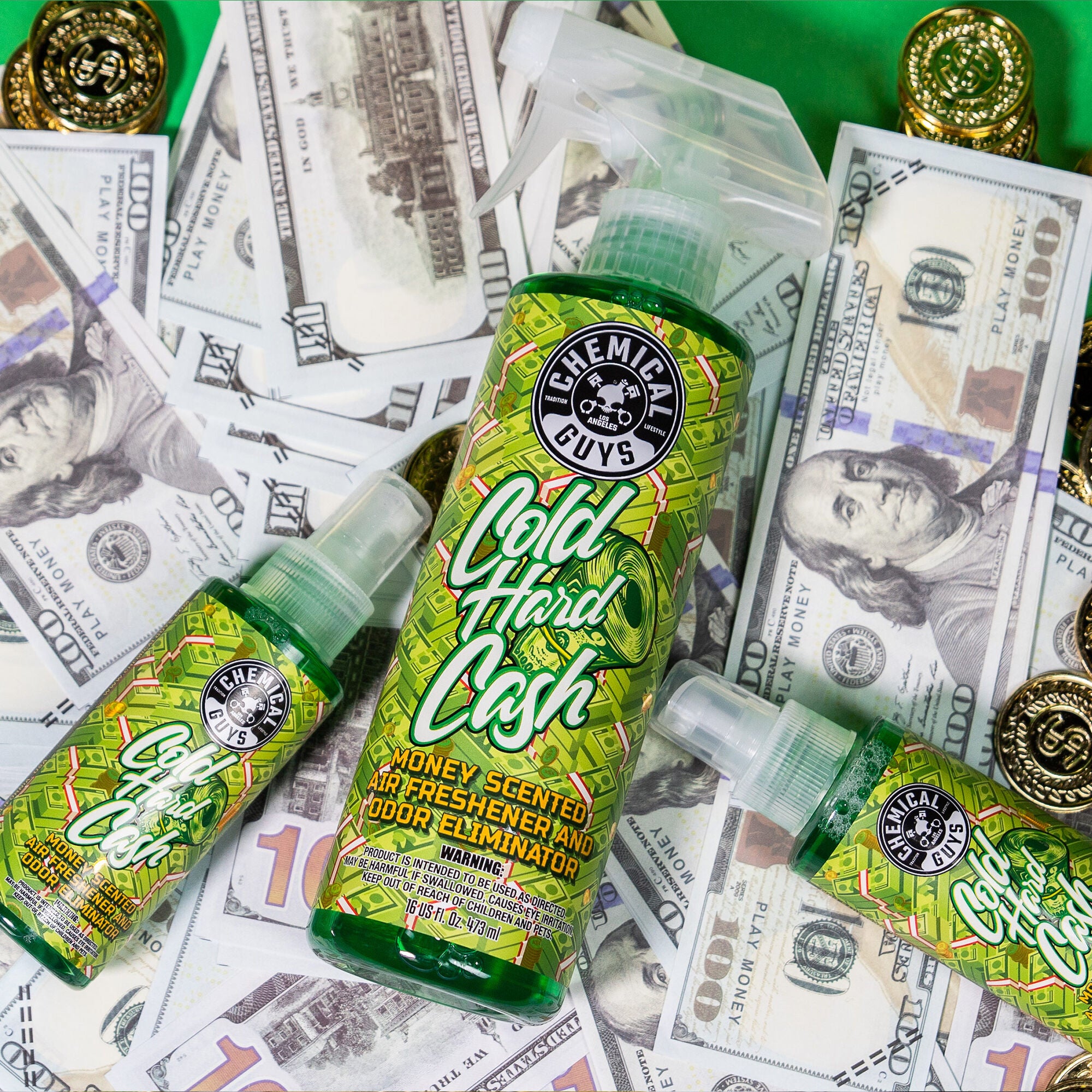 Start your day with Cold Hard Cash. the air freshener that envelops you in the gainful scent of fresh paper currency. It’s your wake-up call to hit the ground running and chase that bag. Embrace the invigorating aroma that motivates and inspires. propelling you towards success with every breath.?