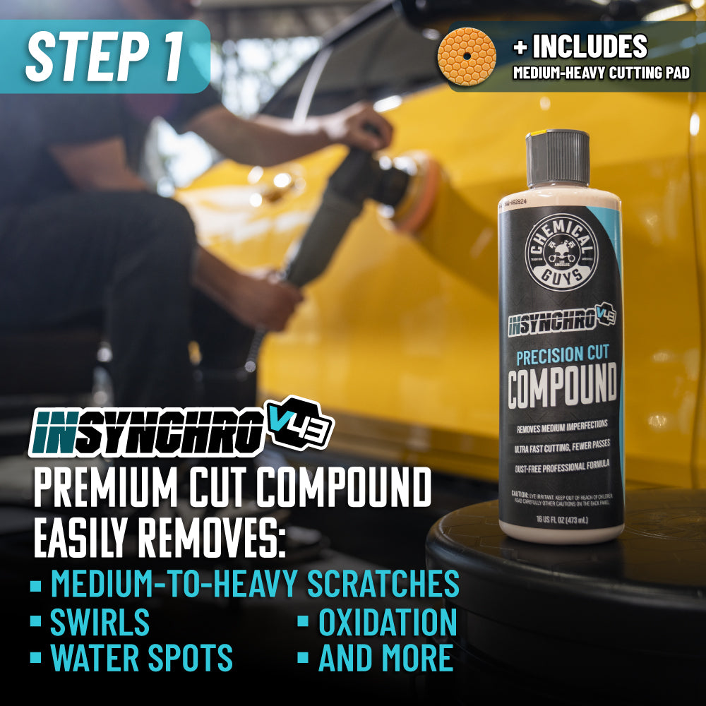 Transform your detailing routine with the InSynchro Advanced Cut & Shine Kit. the all-in-one solution for achieving showroom-quality results. This comprehensive kit includes everything you need to take your vehicle’s finish to a professional standard. With these items. you’ll enjoy the satisfaction of a detailed vehicle that turns nearly every head on the road.