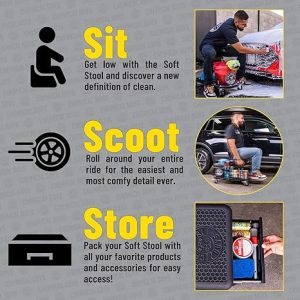 Sit back and relax on the Soft stool detailing cart while blasting foam with just your garden hose attached! This kit takes the stress out of long detailing sessions with everything you need for a satisfying showroom sparkle.