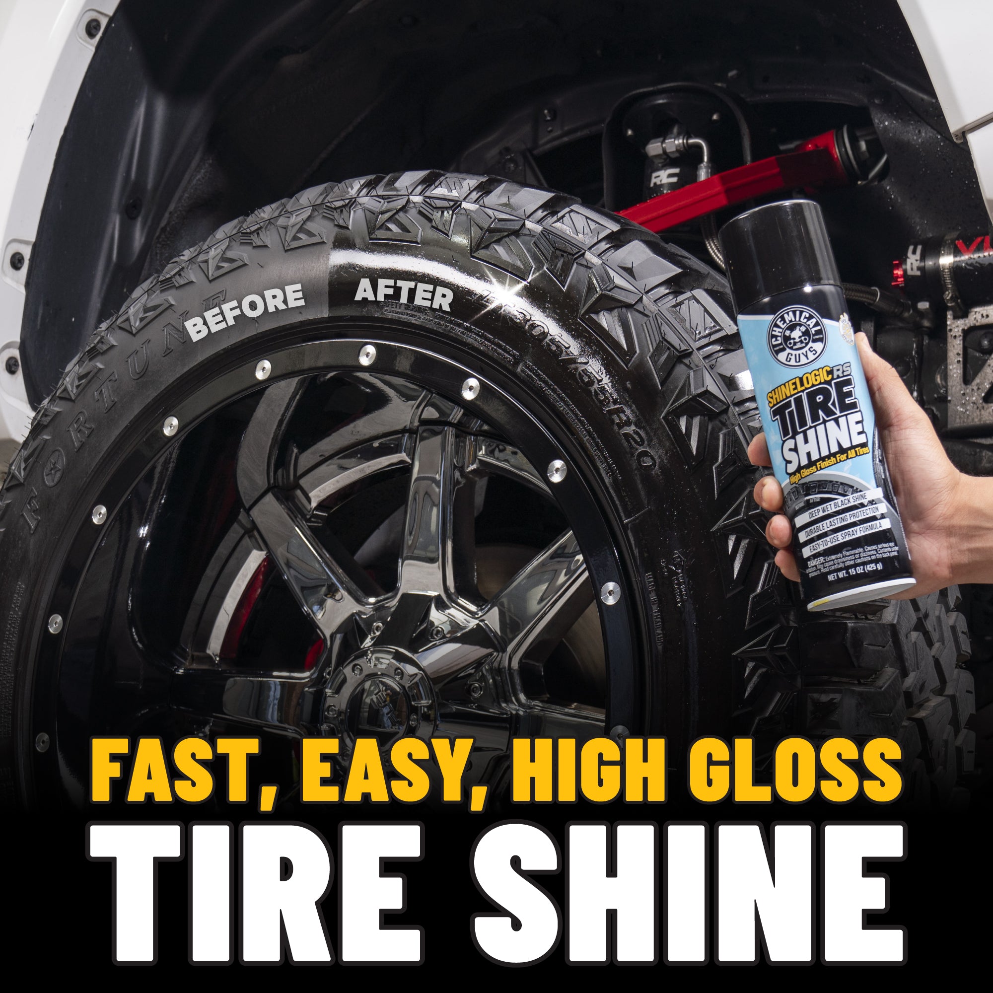 Upgrade your wheel and tire care with our ShineLogic Tire Shine Kit. This bundle includes a powerful wheel cleaner to remove grime and brake dust. plus ShineLogic? for a deep. lasting black tire gloss. Complete with microfiber towels and a wheel brush. this kit delivers sparkling wheels and standout glossy tires. Perfect for car enthusiasts seeking a showroom-quality finish every time.