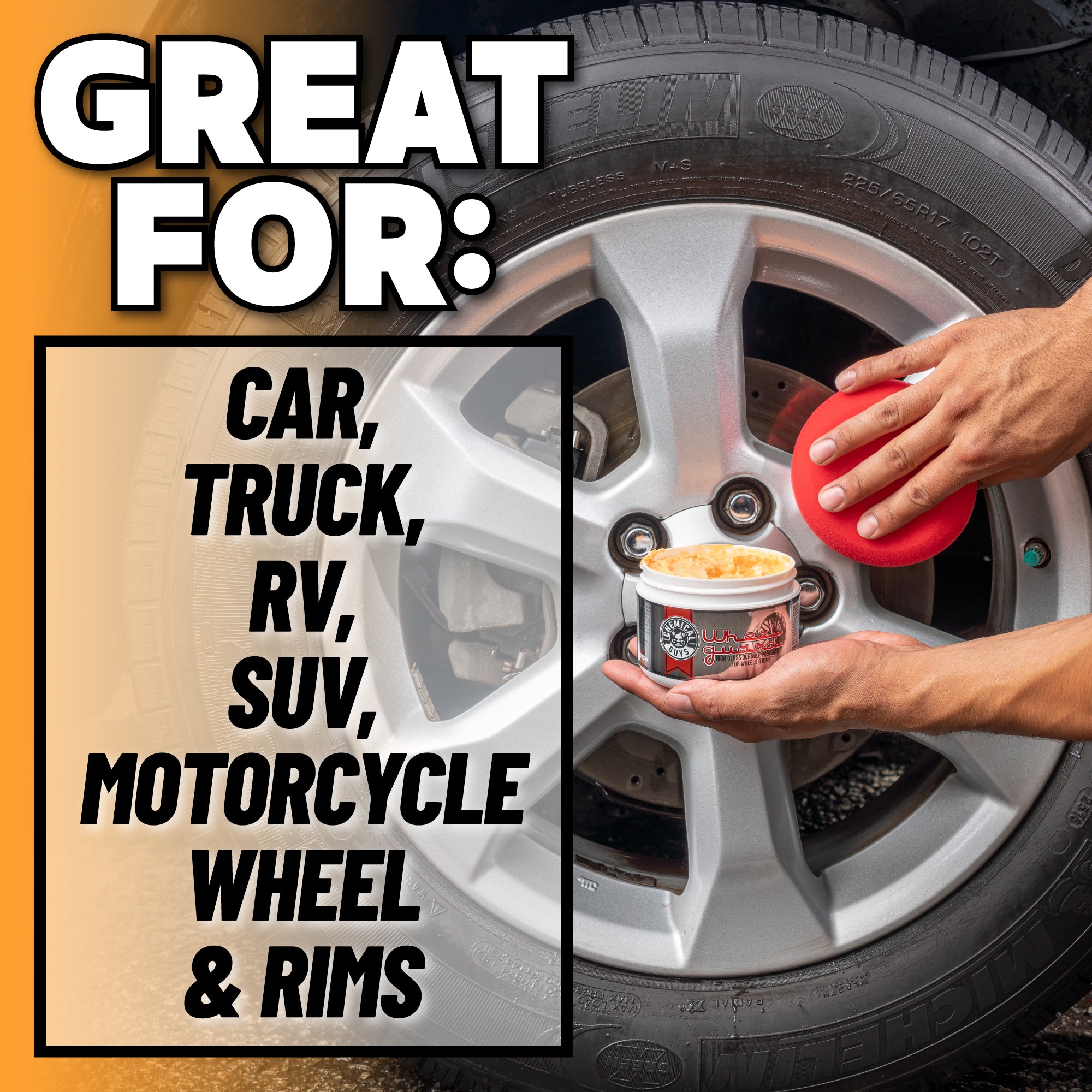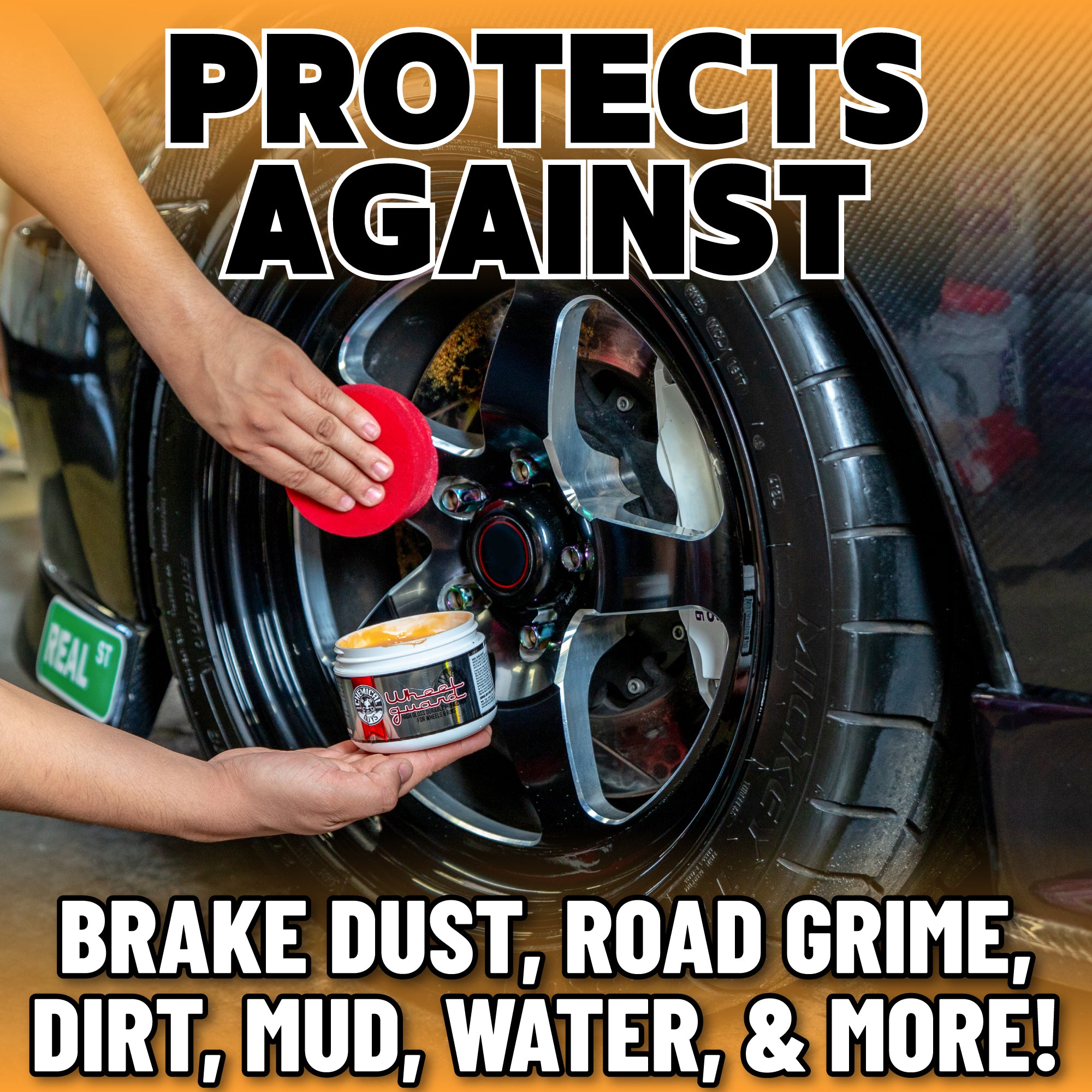 Wheel Guard is a specialty synthetic wax developed just for wheels and brake components to protect against brake dust. grime. dirt. mud. water. and more to keep wheels clean and shiny for longer.